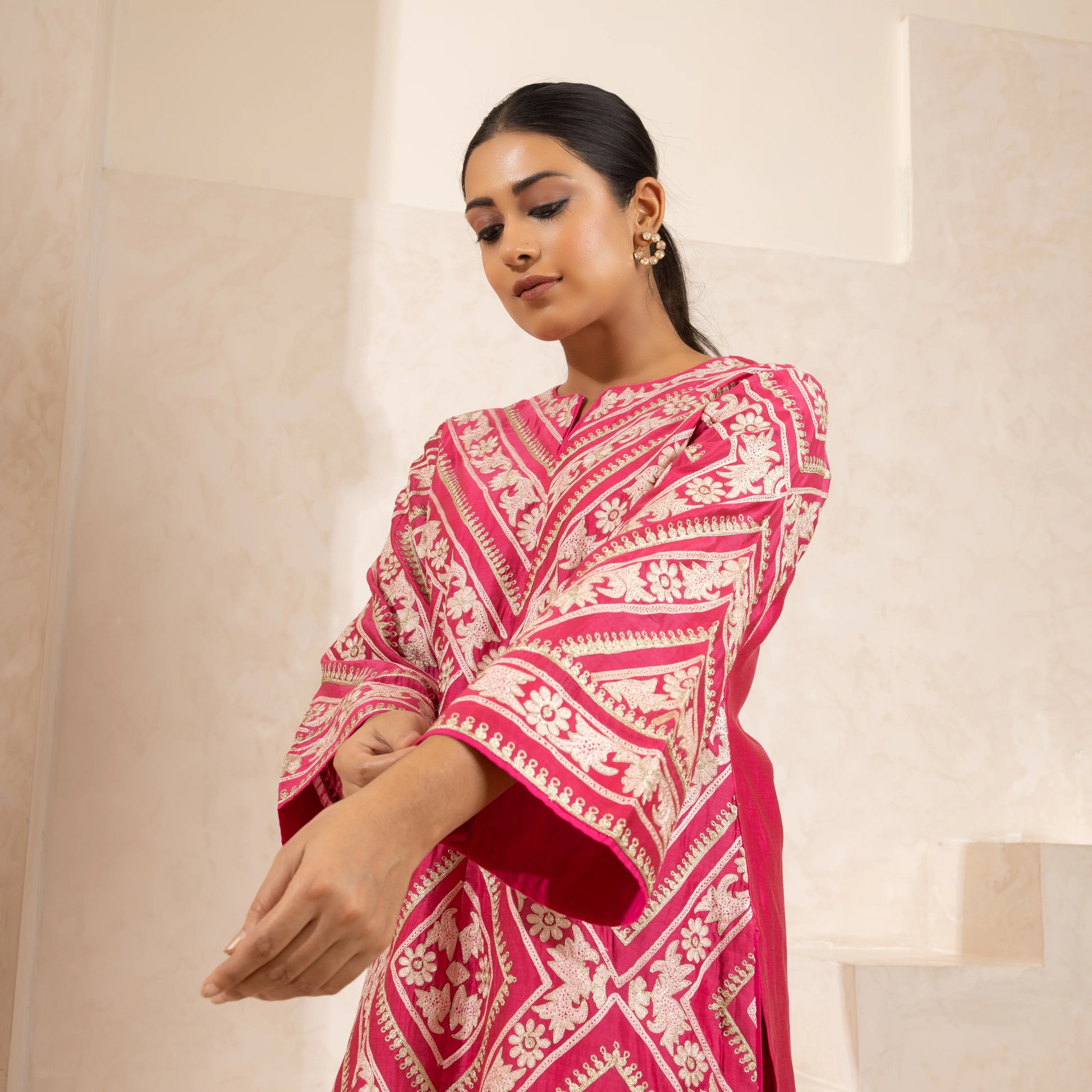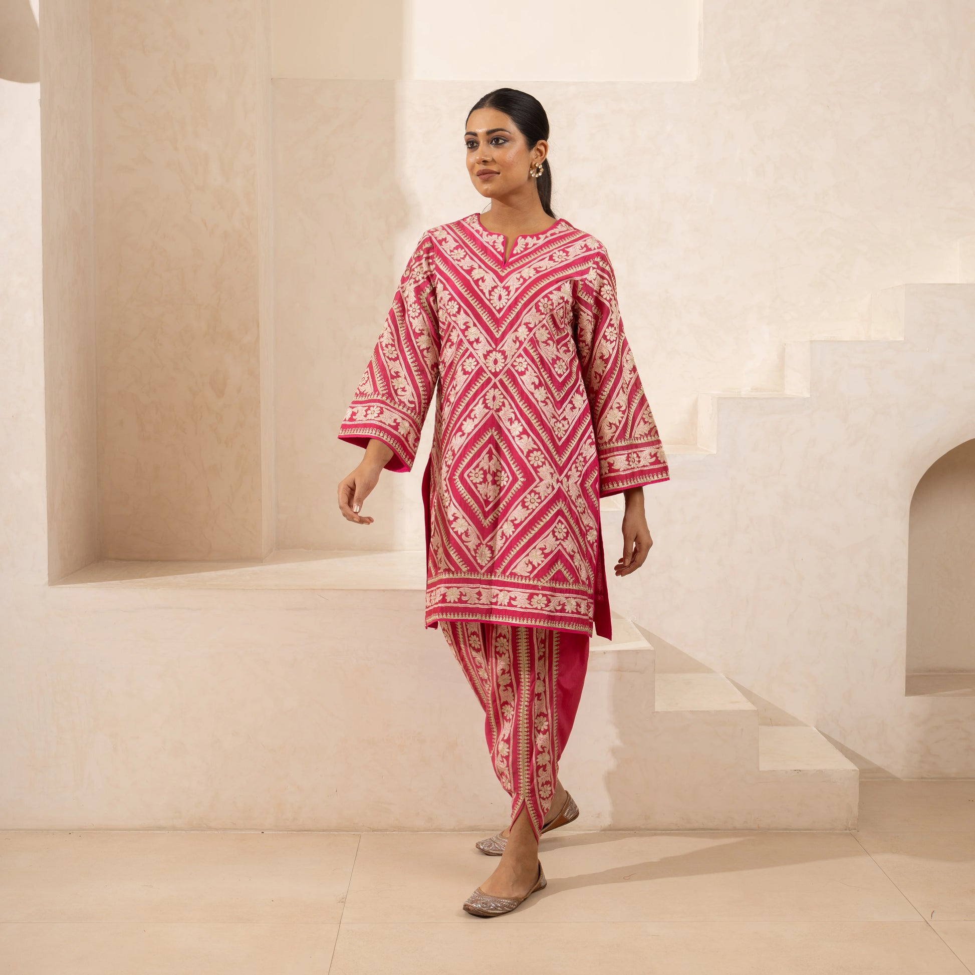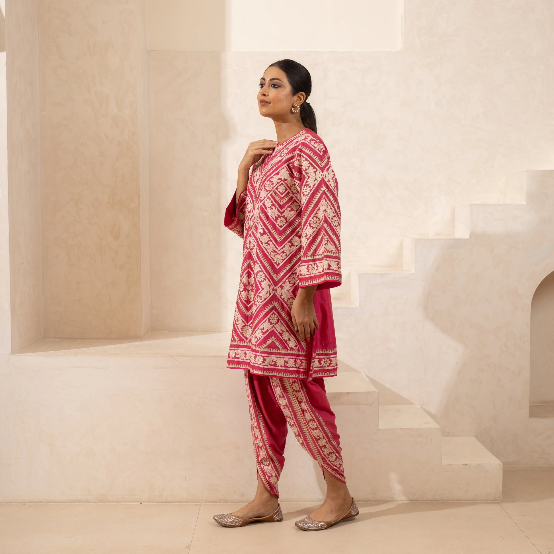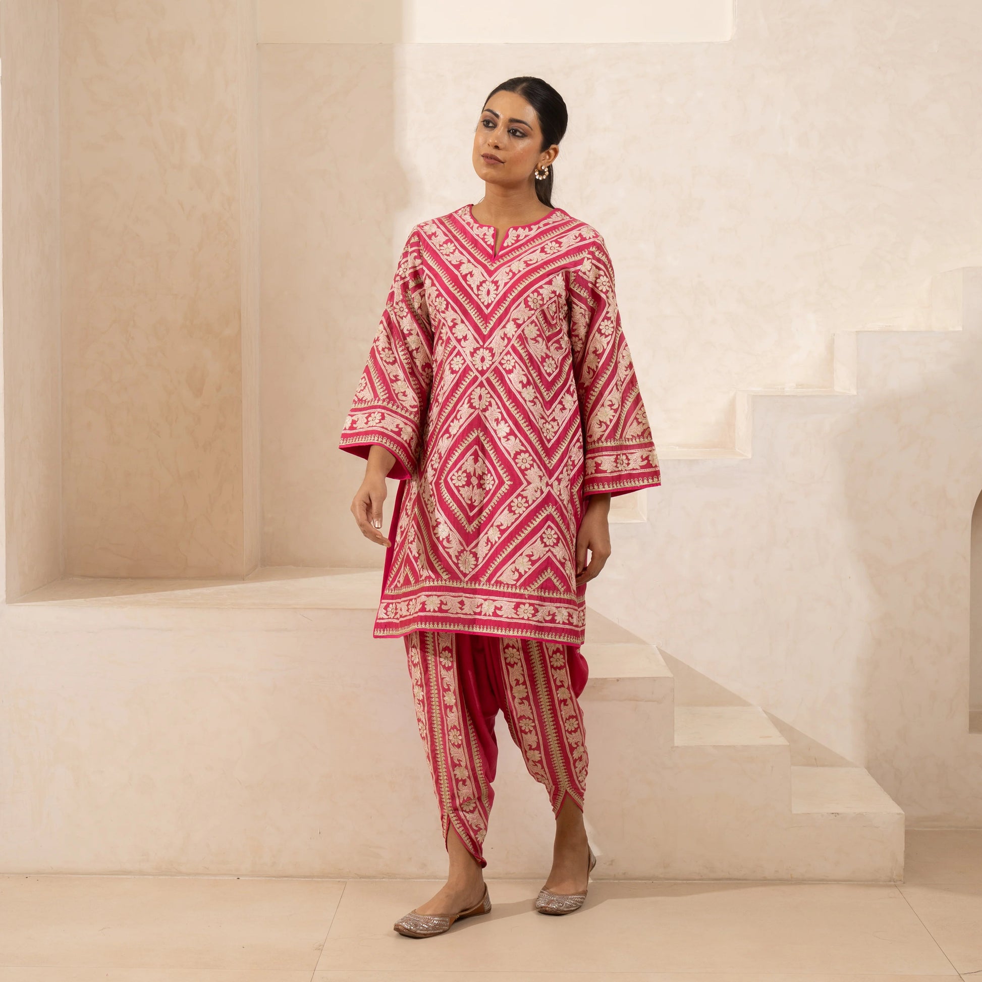 A single-thread and zari-embroidered kurta and dhoti set in pure