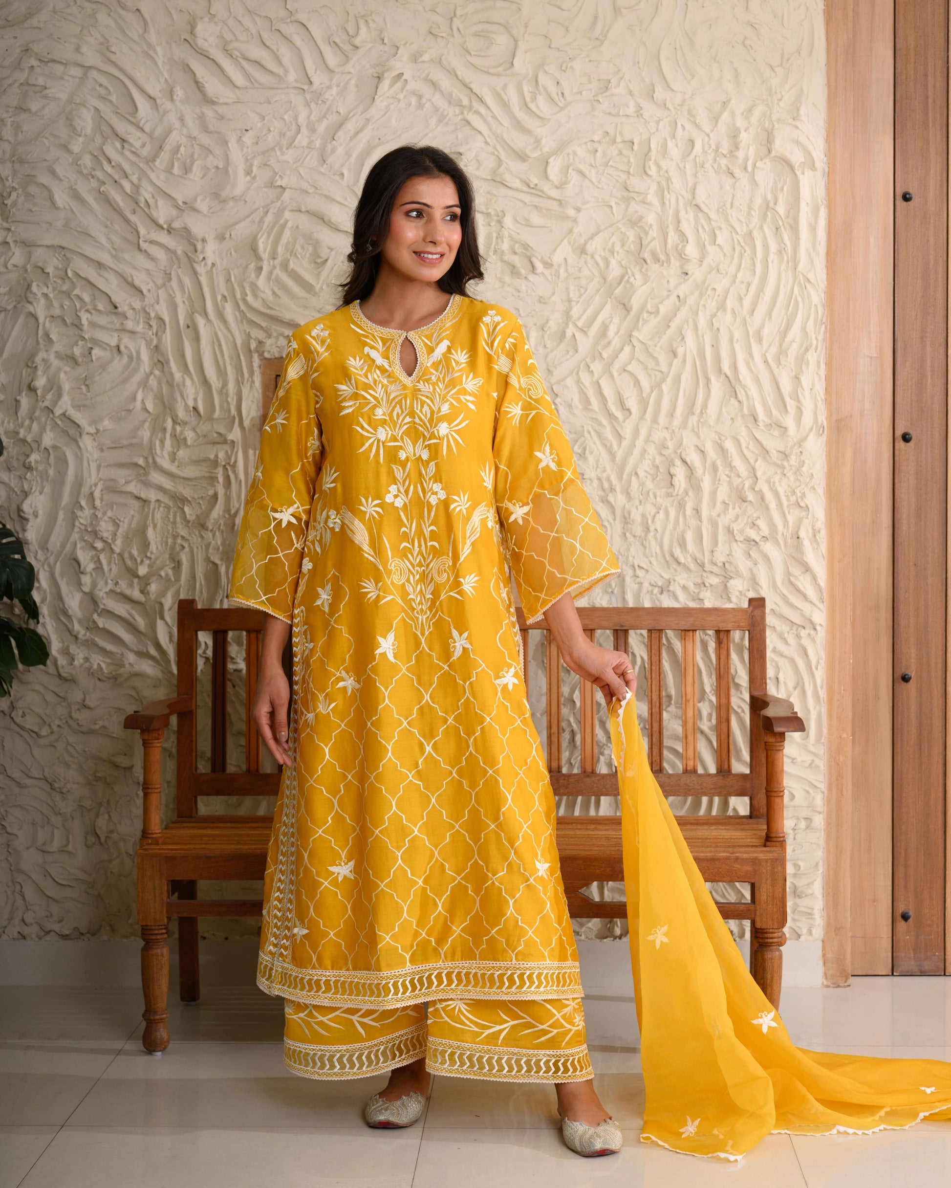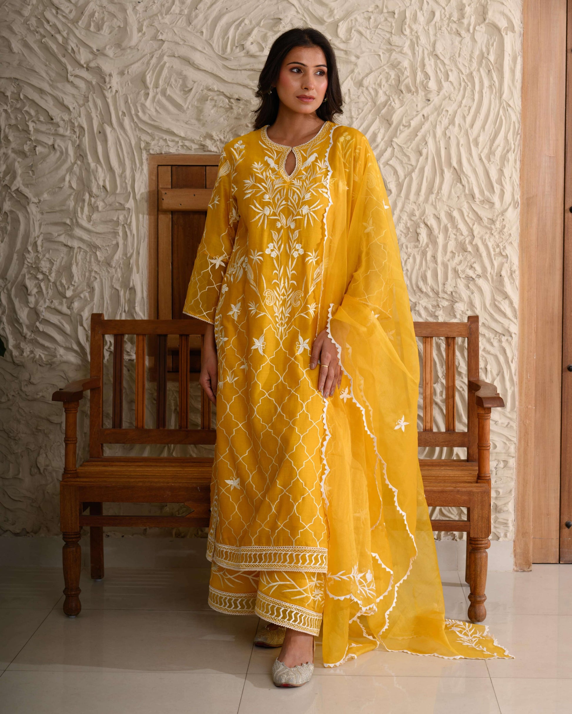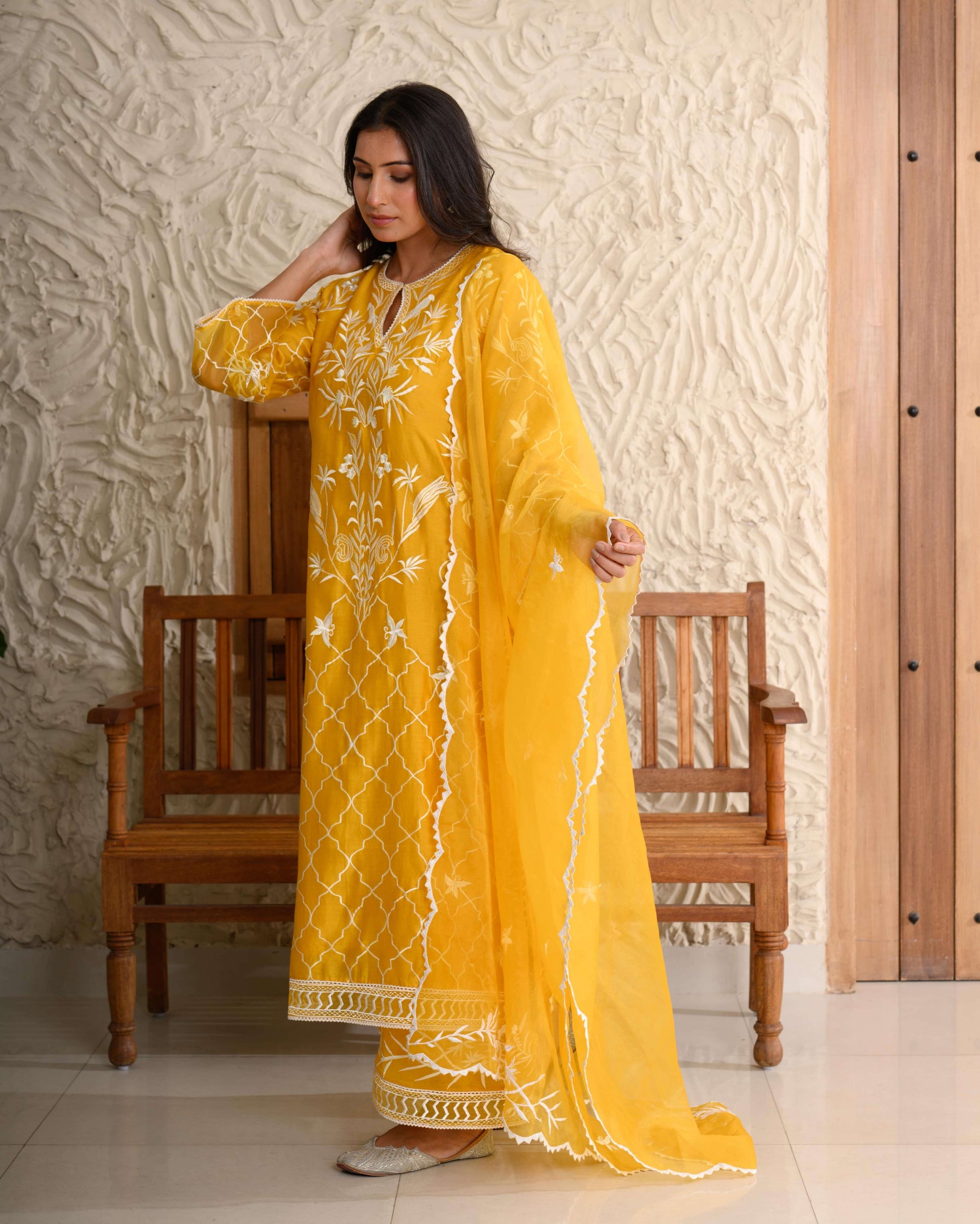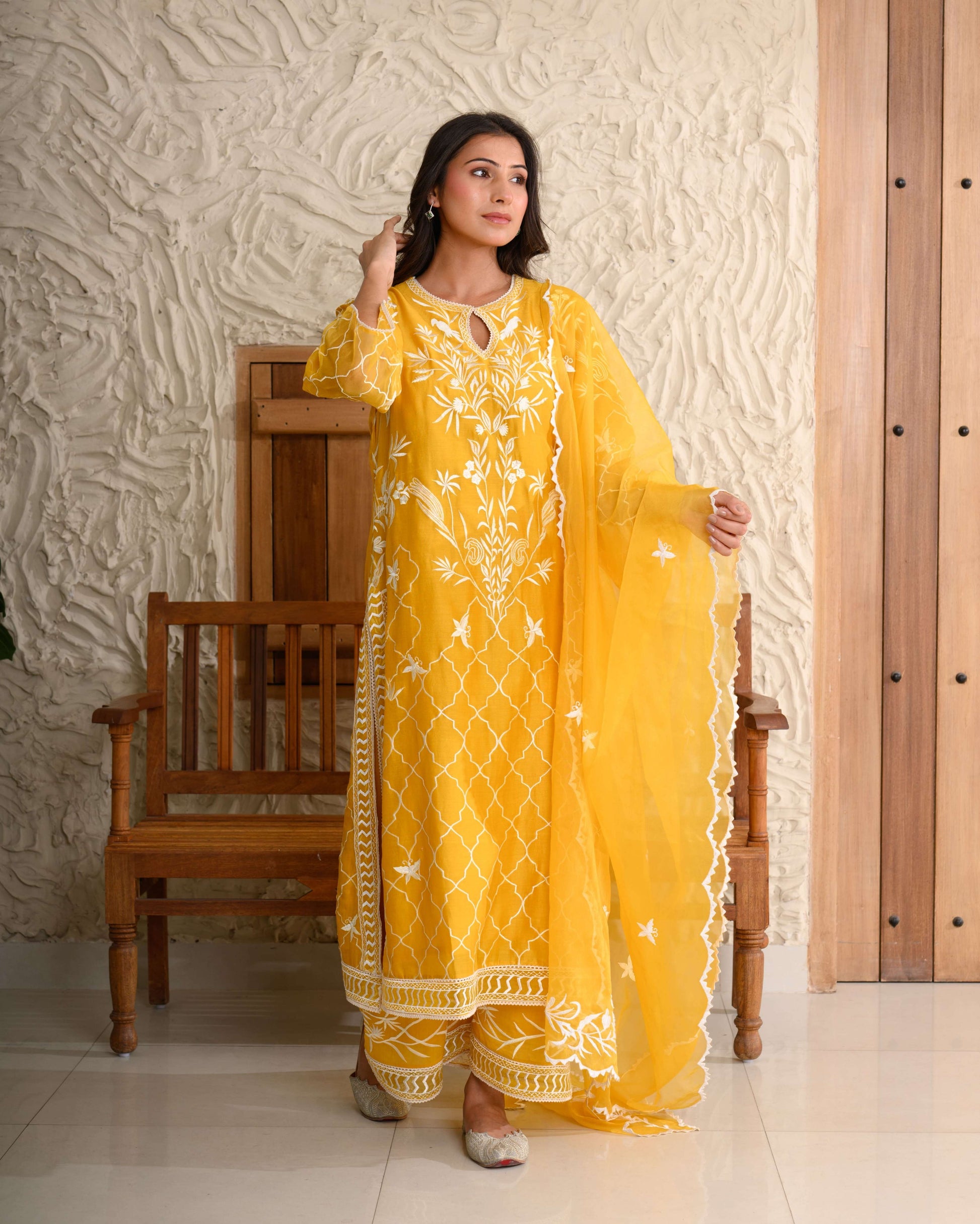 Parsi Gara Jaal Kurta Set – Intricately embroidered on pure Chanderi, paired with an organza dupatta.