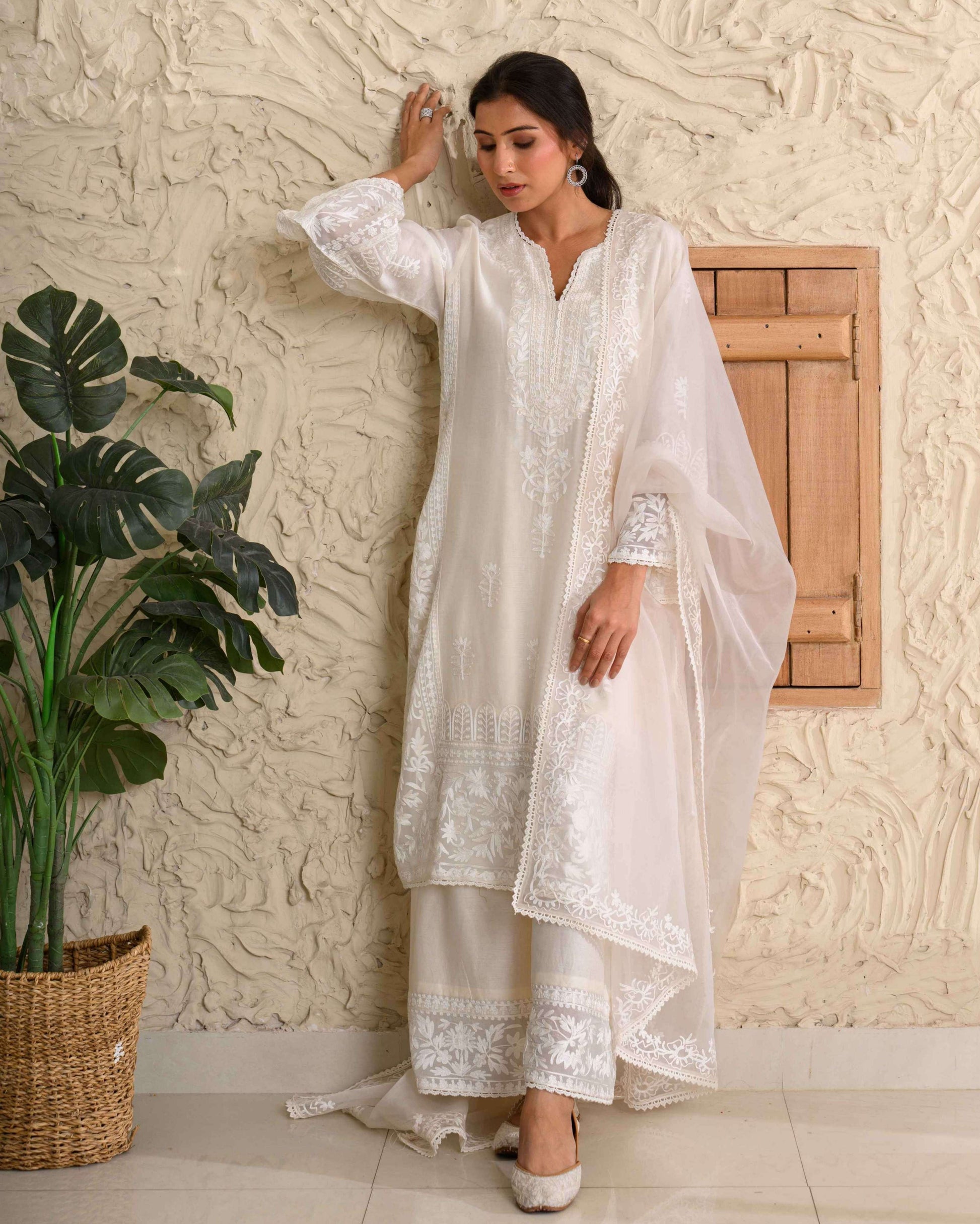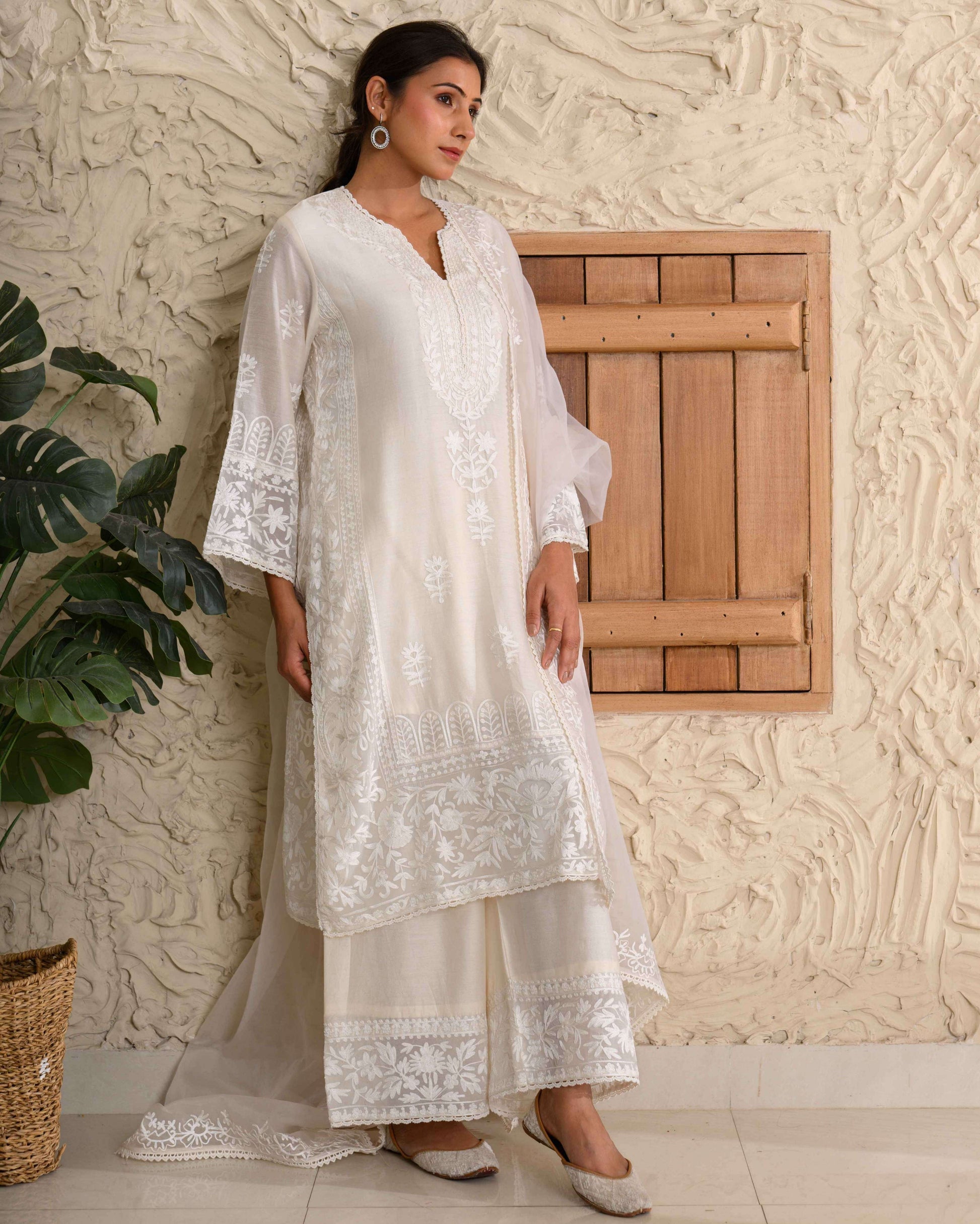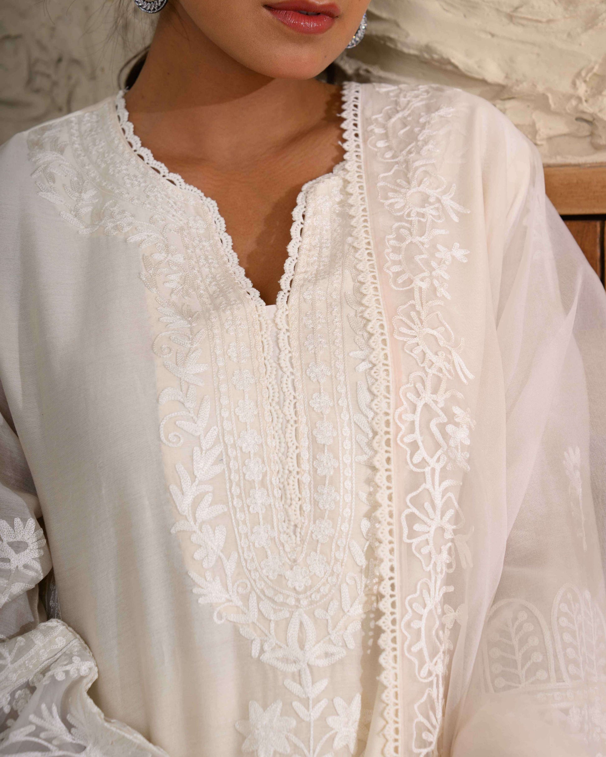 Kashmiri Aari Chanderi Set – Finely embroidered in self-tone Kashmiri Aari work on pure Chanderi silk, paired with an organza dupatta.