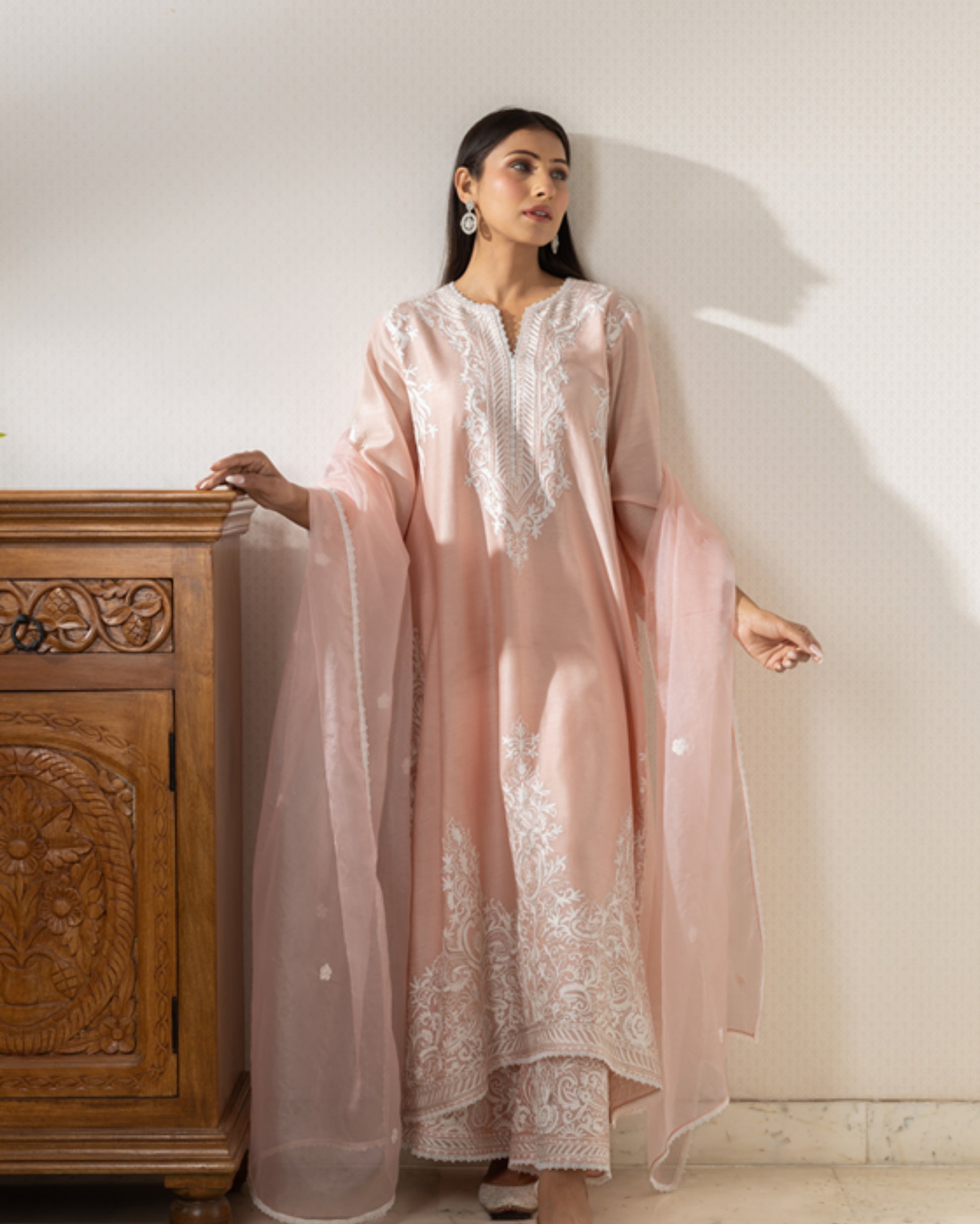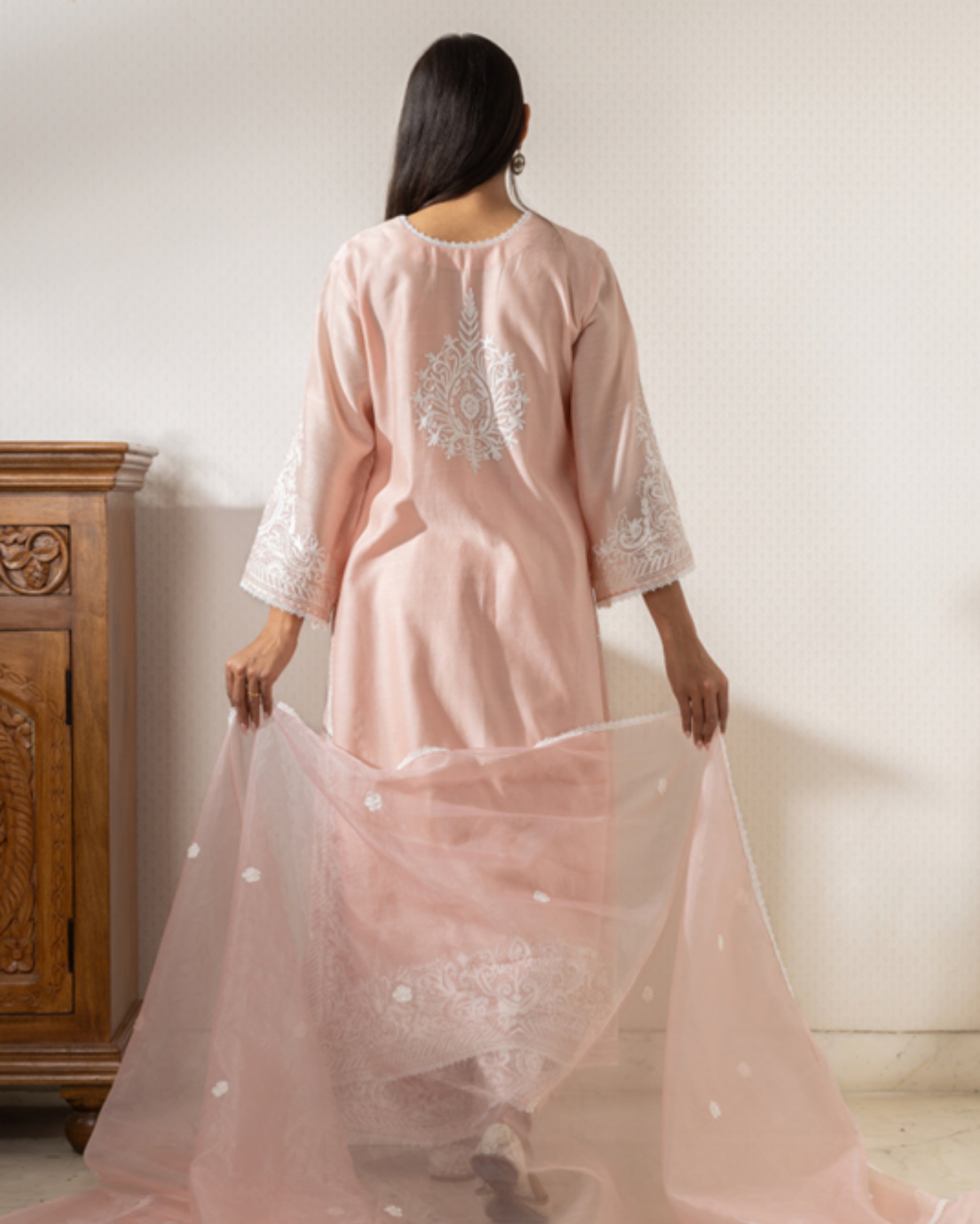 Introducing our Chanderi silk Kurta set, delicately embroidered with fine thread. This ensemble can be customized in any color to match your style.
