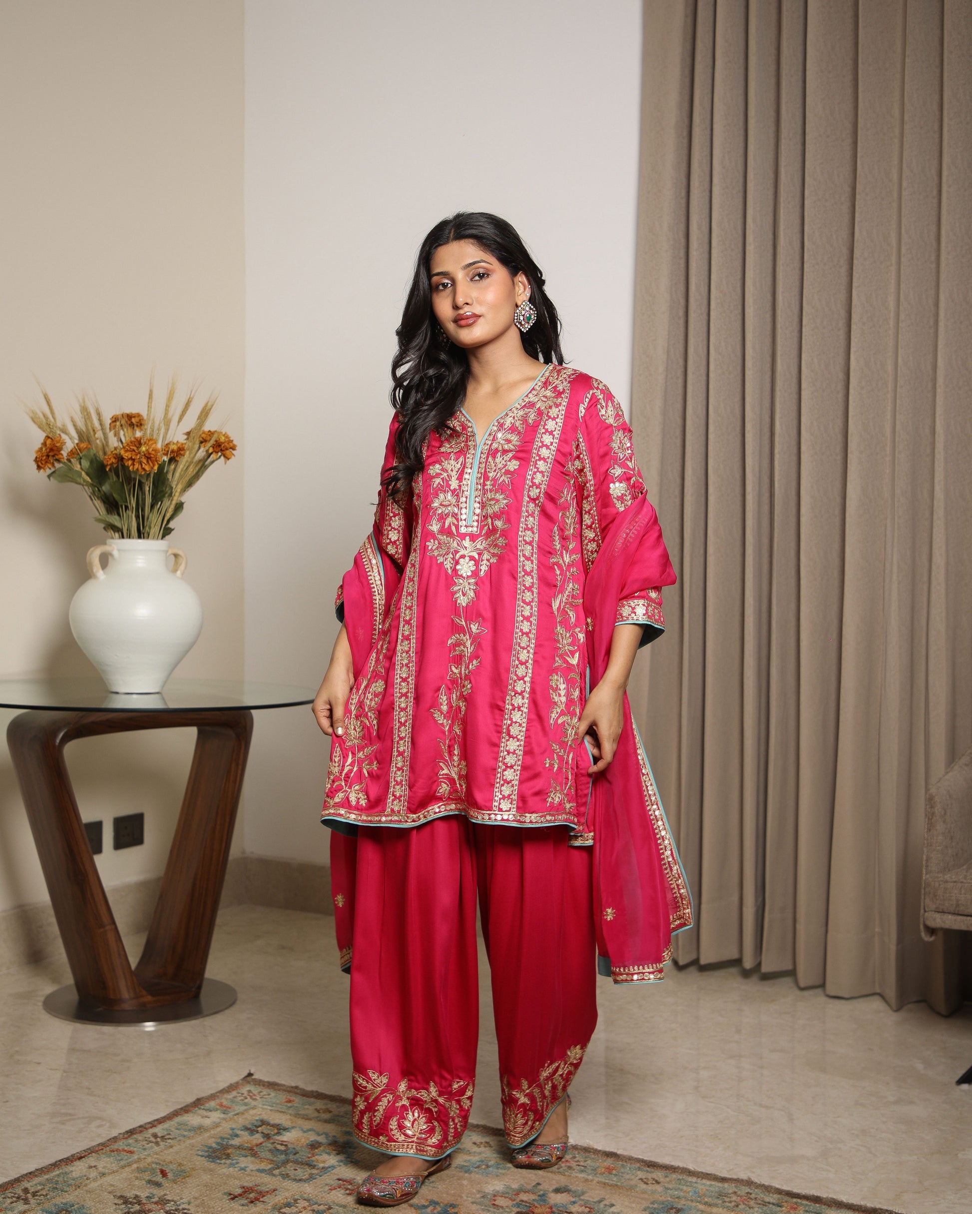 Dori and gota patti embroidered kurta set, paired with a classic farshi salwar — traditional elegance with timeless charm.