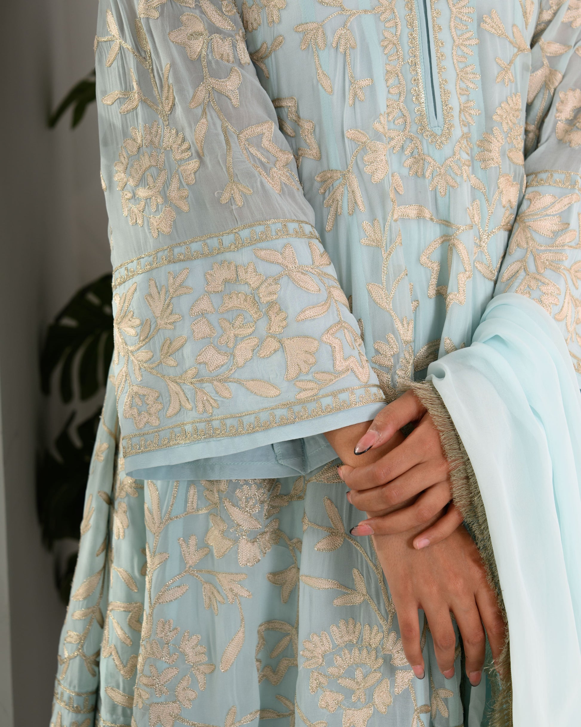 Georgette A-Line Kurta Set – Pure georgette A-line kurta paired with a