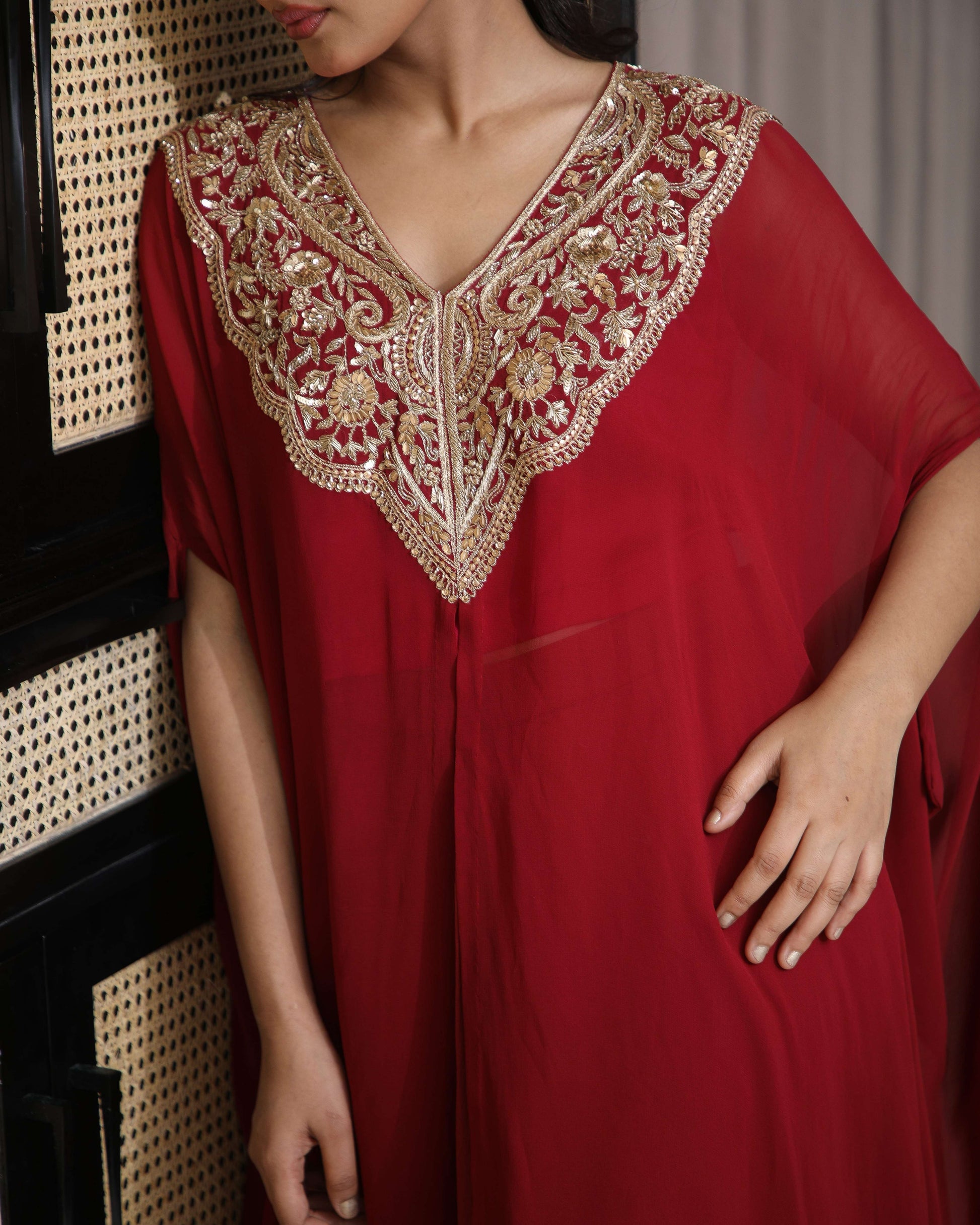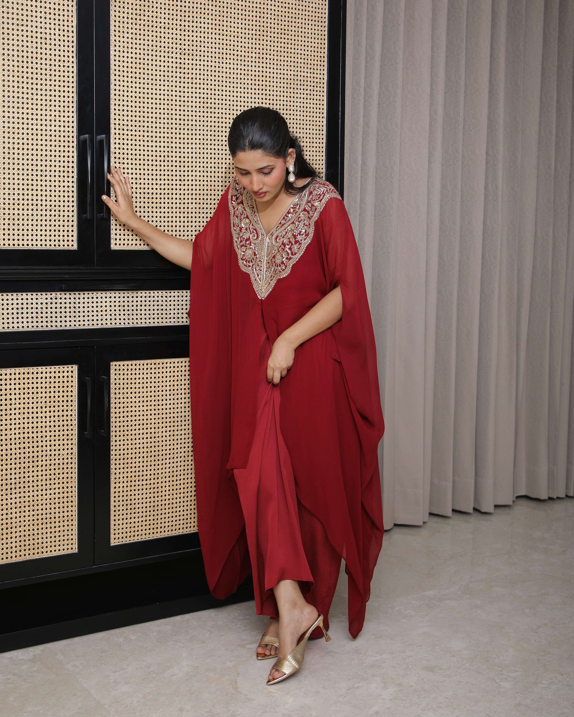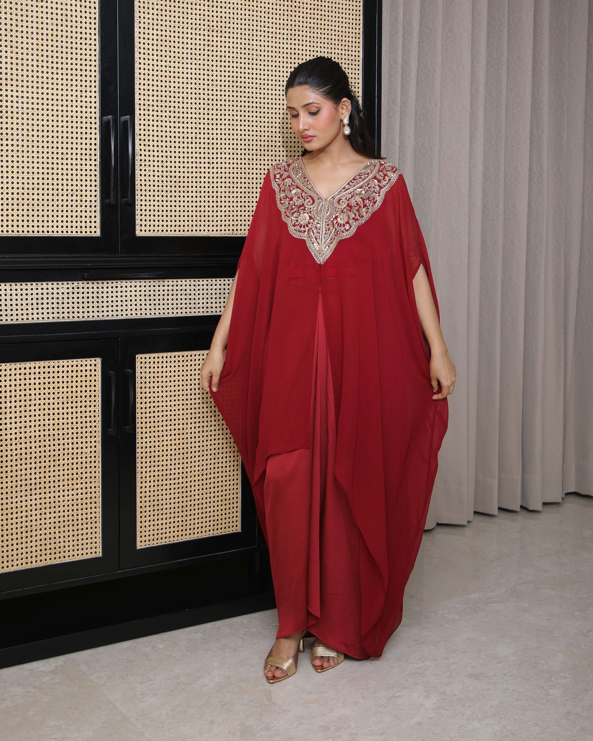 Hand and dori embroidered kaftan cape set paired with a farshi salwar — a graceful blend of tradition and modern ease.