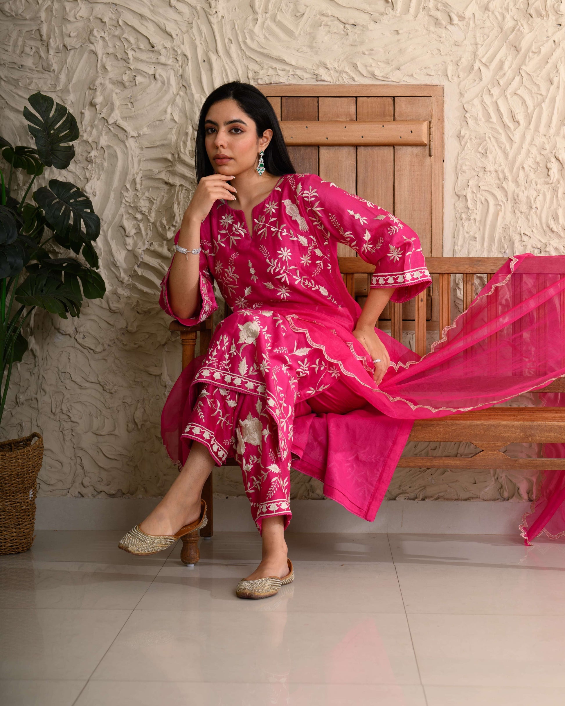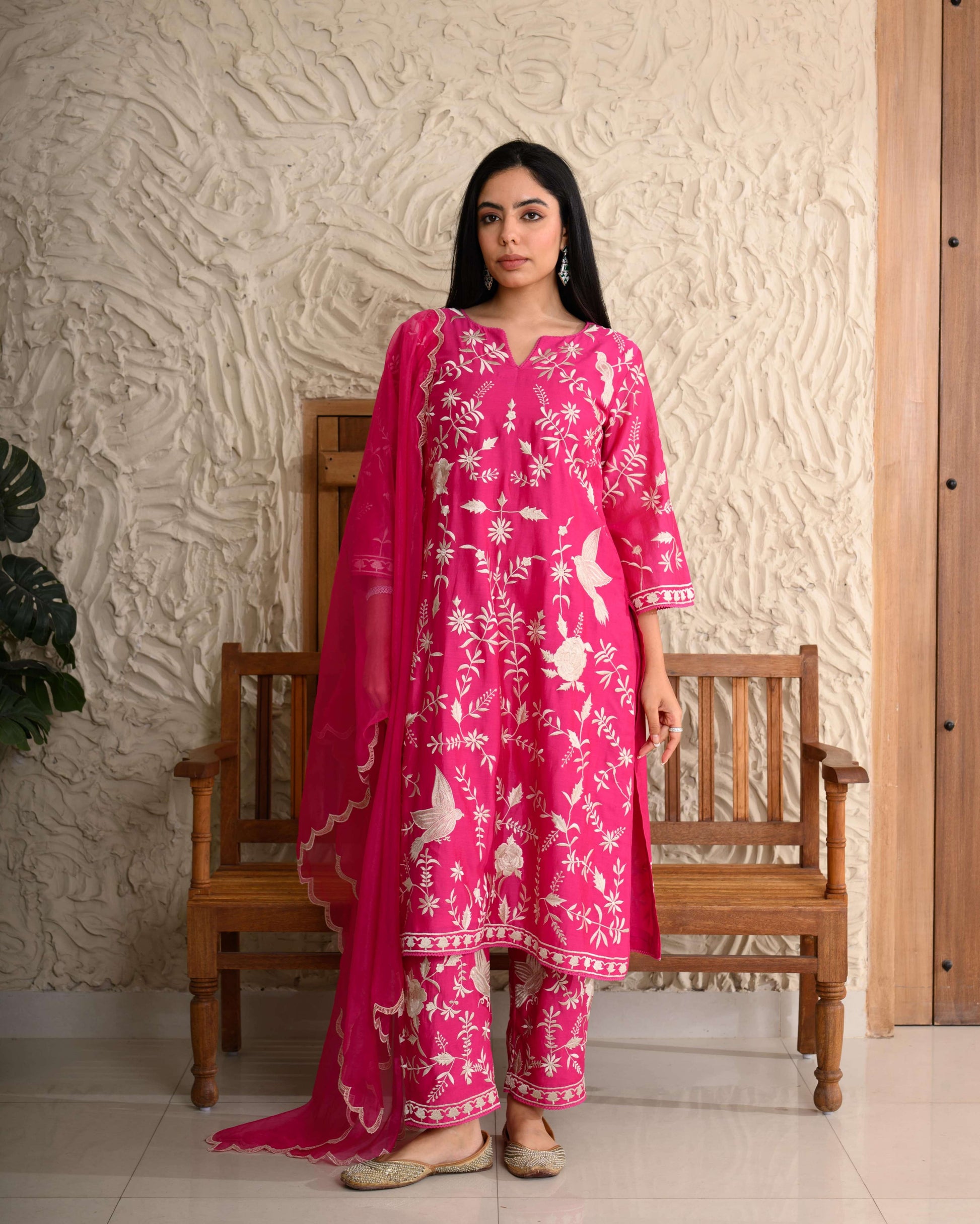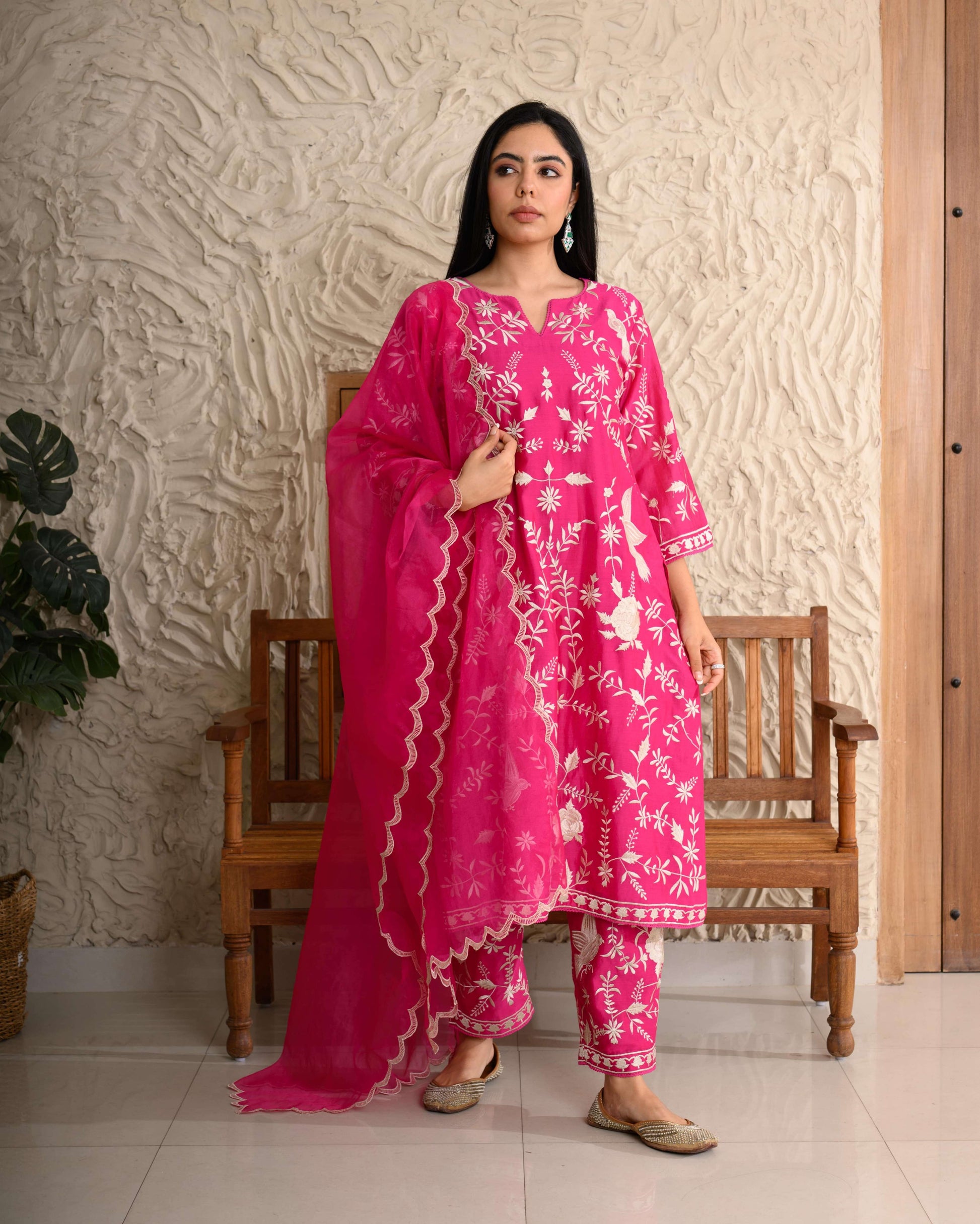 Parsi Gara Kurta Set – Exquisitely embroidered in Parsi Gara threadwork on pure Chanderi, paired with an organza dupatta.