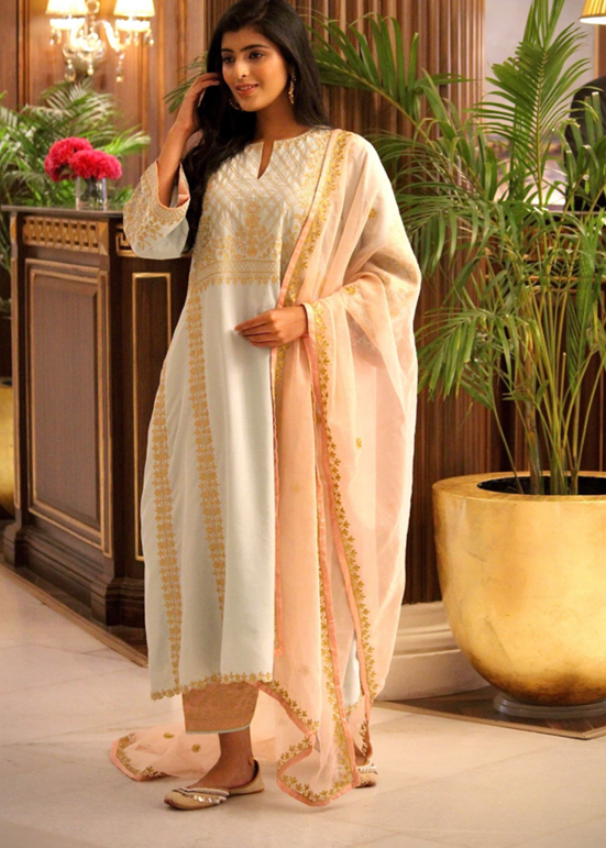 A line kurta with gold aari zari embroidery