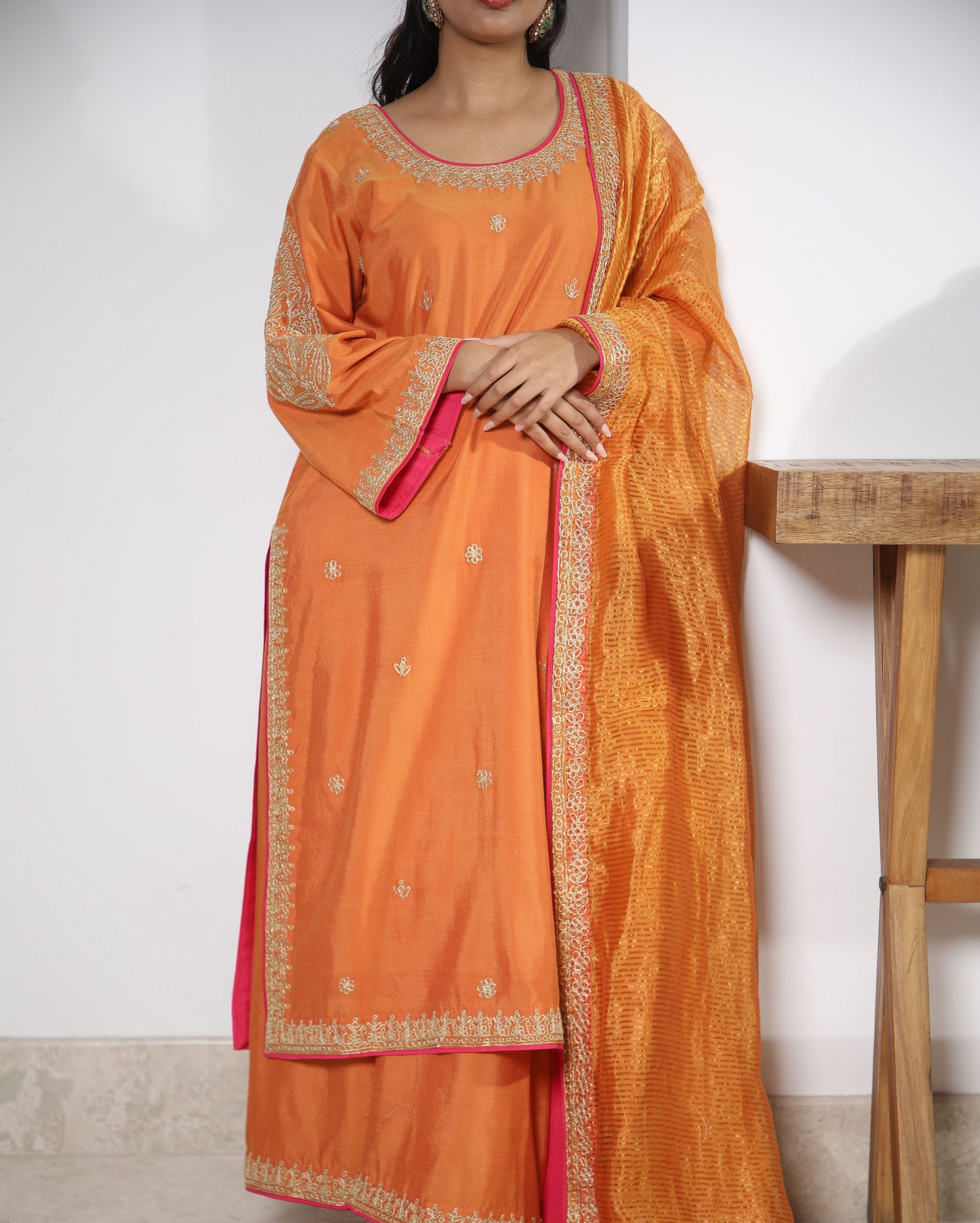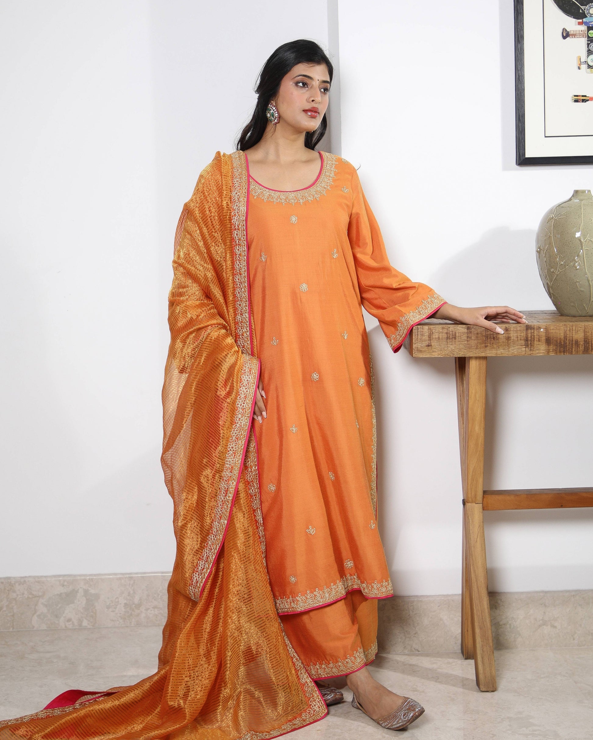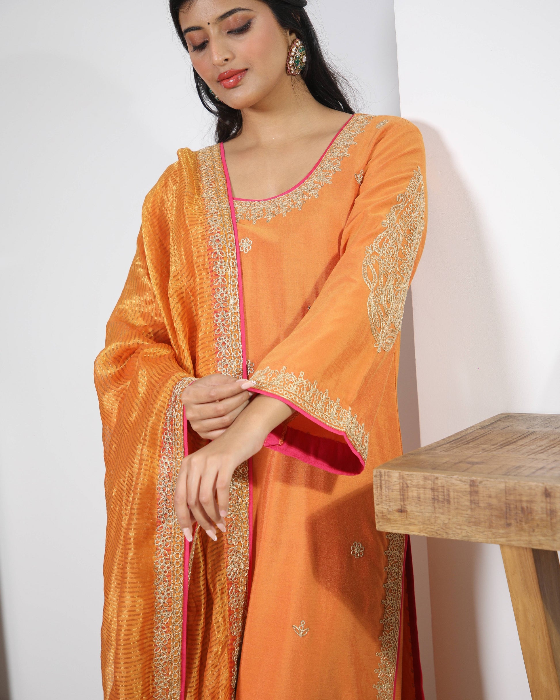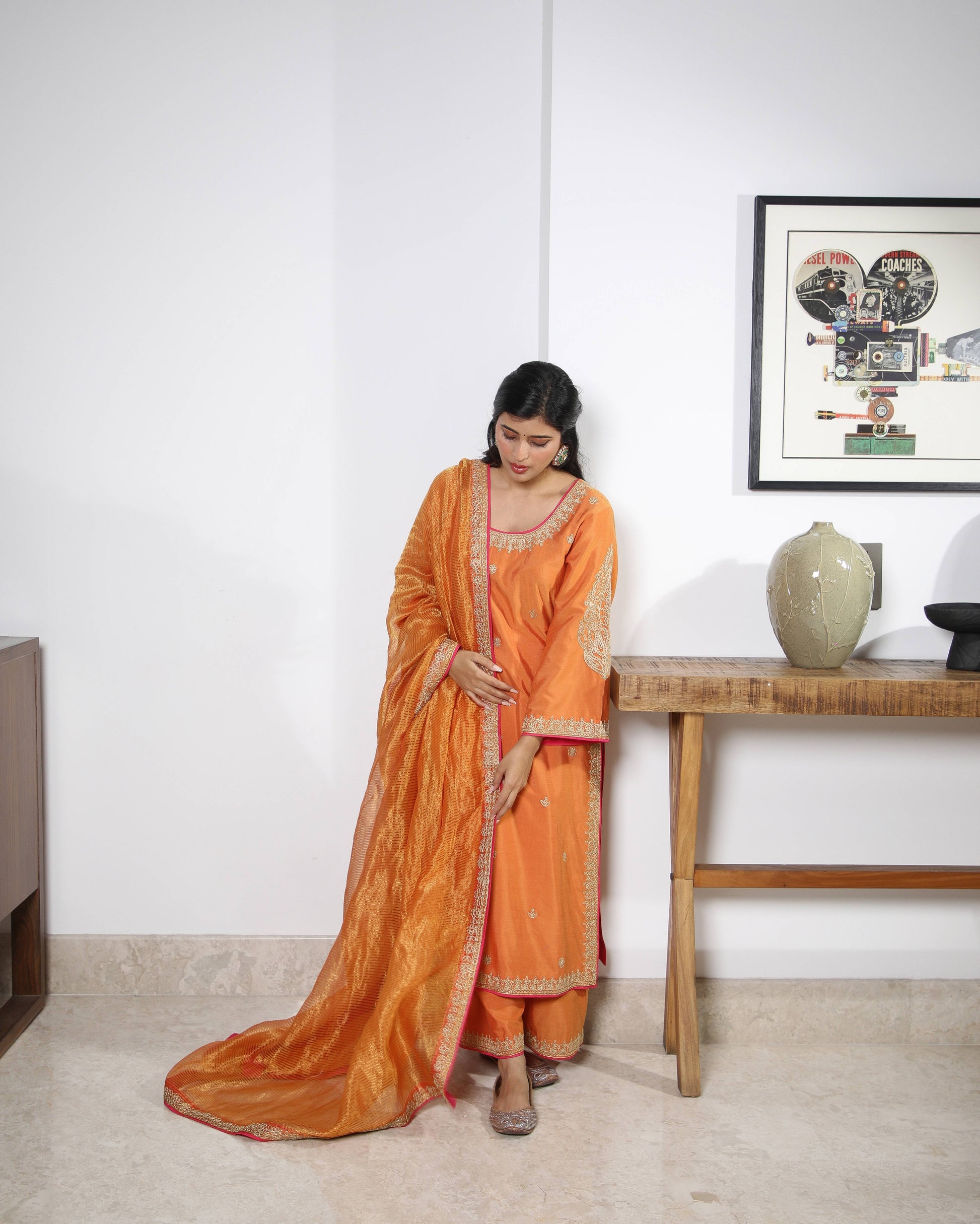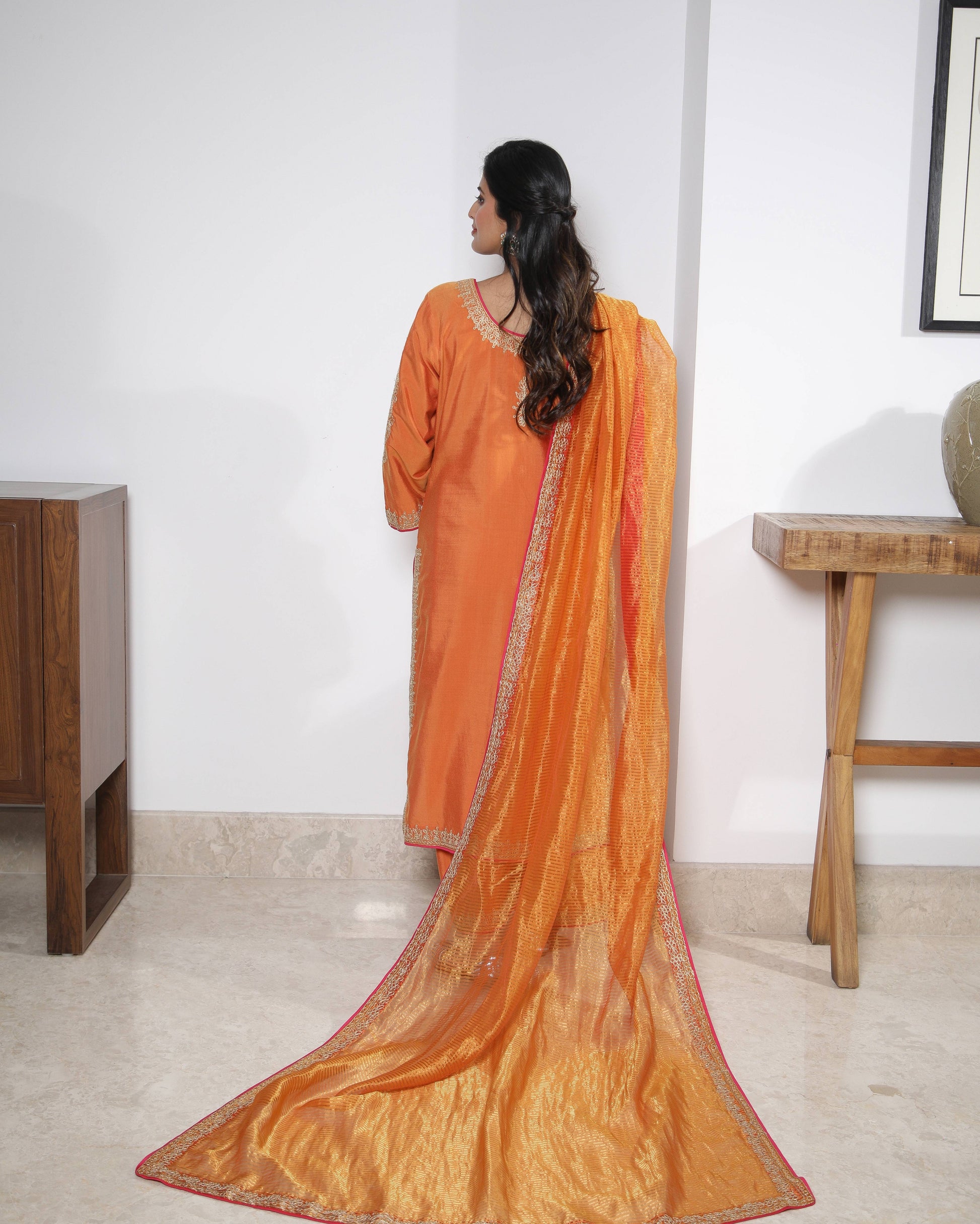 Pure tissue kurta set with hand and dori embroidery, paired with a classic Pakistani salwar — timeless festive elegance.